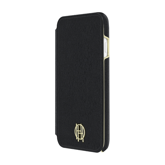 House of Harlow 1960 Black Leather Wallet/Gold Metallic Case for iPhone 7/8/SE (2020)